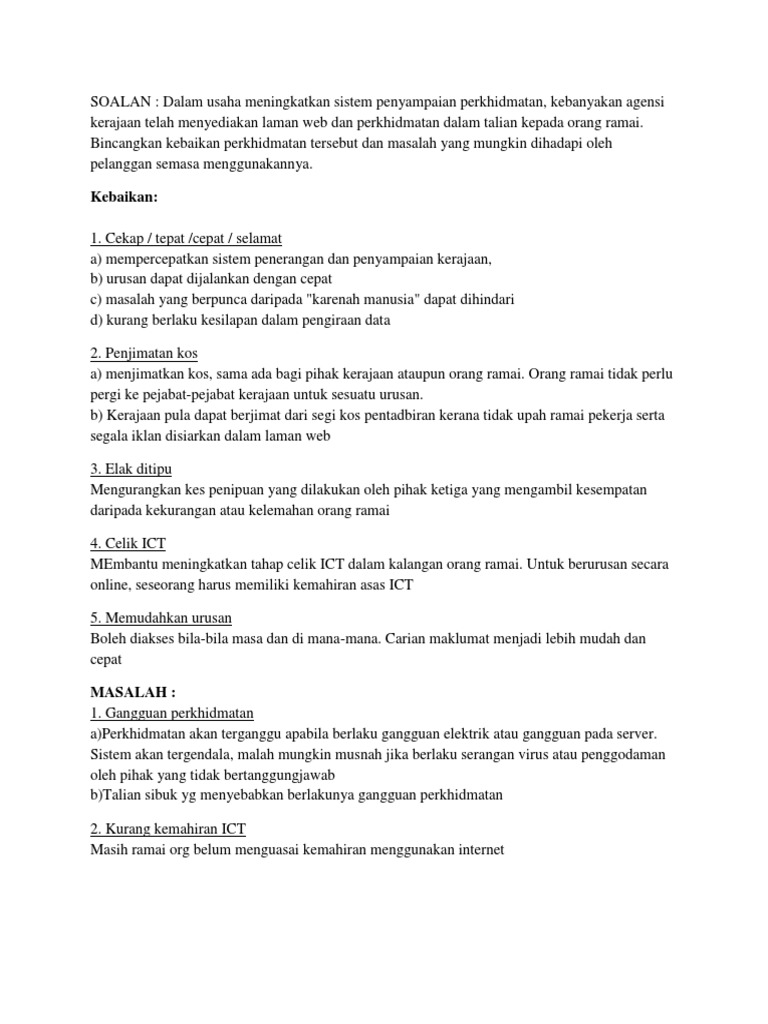 Karangan Sistem Penyampaian Perkhidmatan Kebaikan Dan Masalah